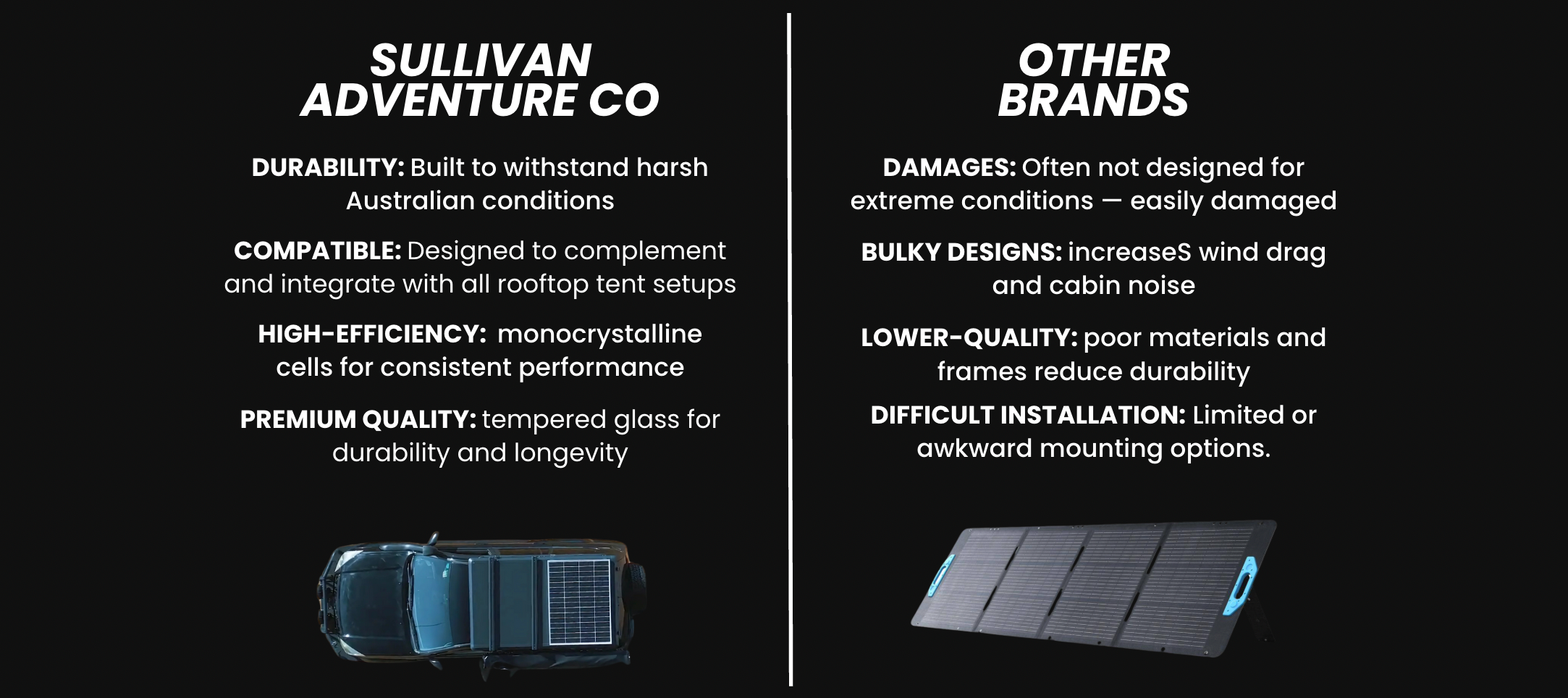 Power your adventures by upgrading with our 200W Solar Panel — the perfect addition for weekend getaways, worksite convenience, or full-time travel. Designed with a sleek, aerodynamic profile and built to handle Australia’s toughest conditions, this panel combines durability, performance, and style.